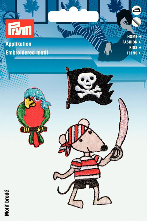 Набор термоаппликаций "Пираты" (флаг 28*28мм, попугай 38*22мм, мышонок 67*45мм) 100% полиэстер, 3шт в наборе