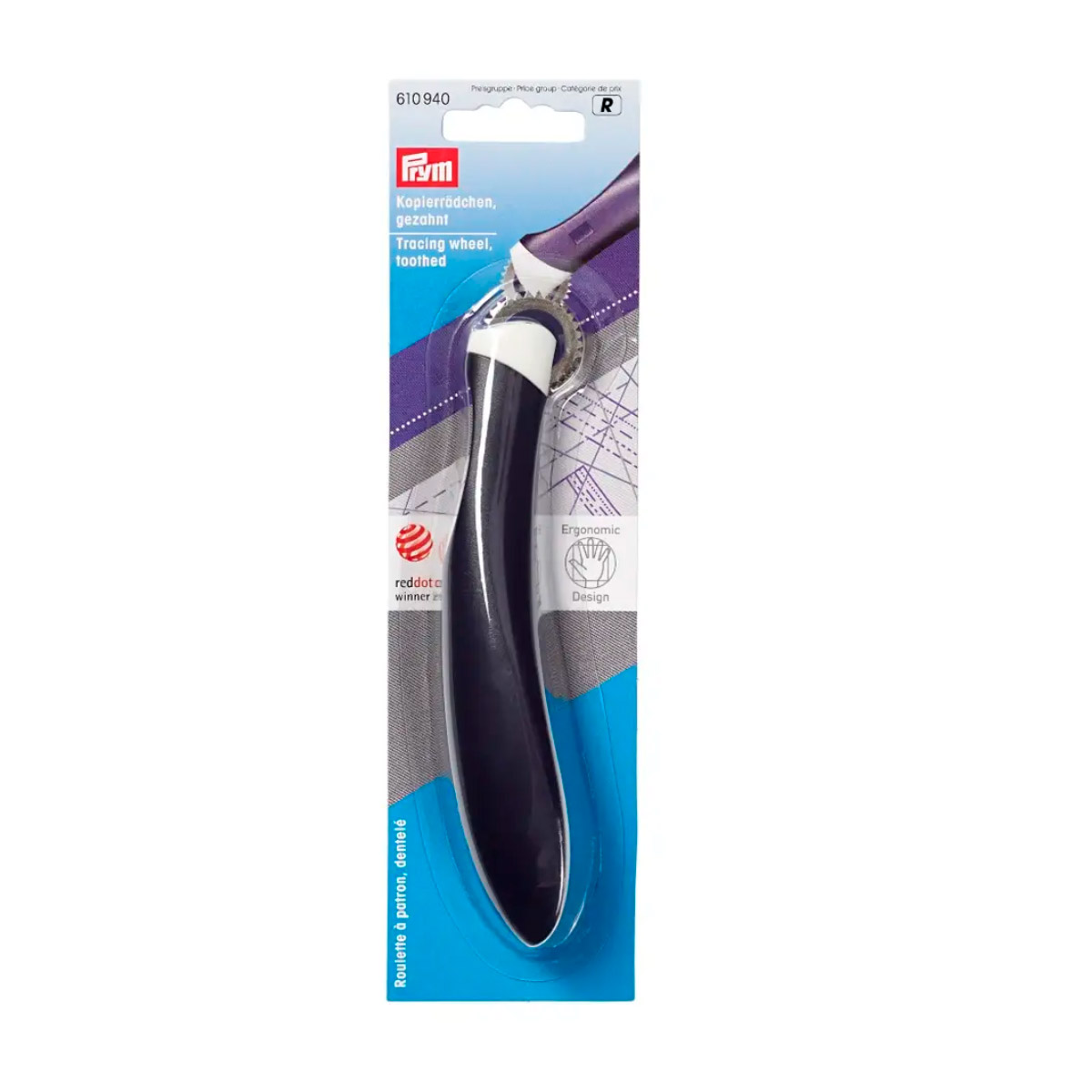 Копировальное колесико, пластиковая ручка, зубчатое металлическое колесико, Prym, 610940
