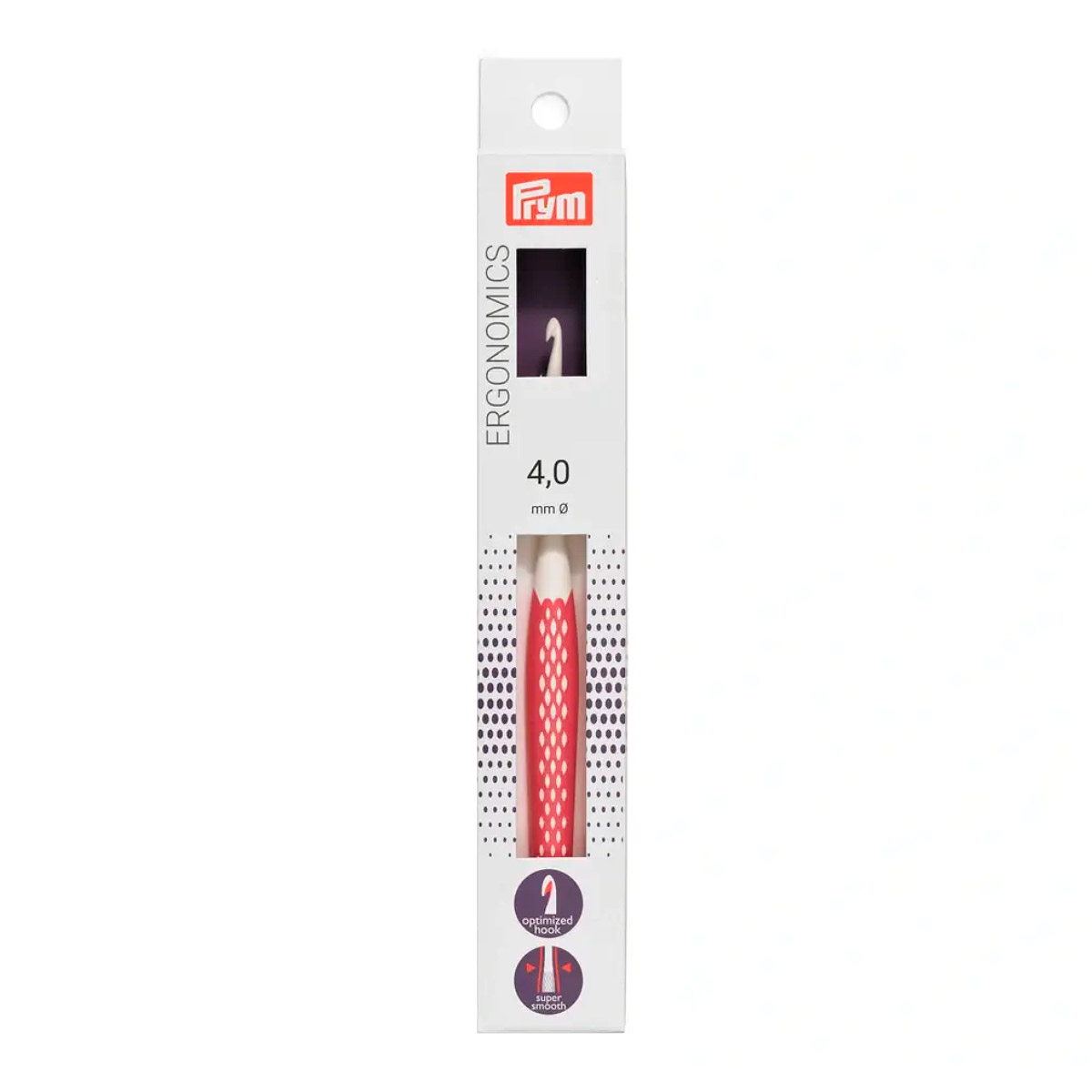 Крючки для шерстяной пряжи Prym Ergonomics сделаны из высококачественного пластика. Они доступны в диапазоне толщины от 3,0 до 15,0 мм. Эти крючки удобны в использовании, берегут суставы, легкие и приятно лежат в руке. Их теплый материал добавляет комфорта. Глянцевый стержень обеспечивает легкое скольжение петли. Эргономичная ручка из нескользящего пластика предотвращает усталость. Яркие цветные ручки облегчают поиск нужного крючка в корзине. В 2014 году Prym Ergonomics получили премию Red Dot Design Award за высокое качество и дизайн.