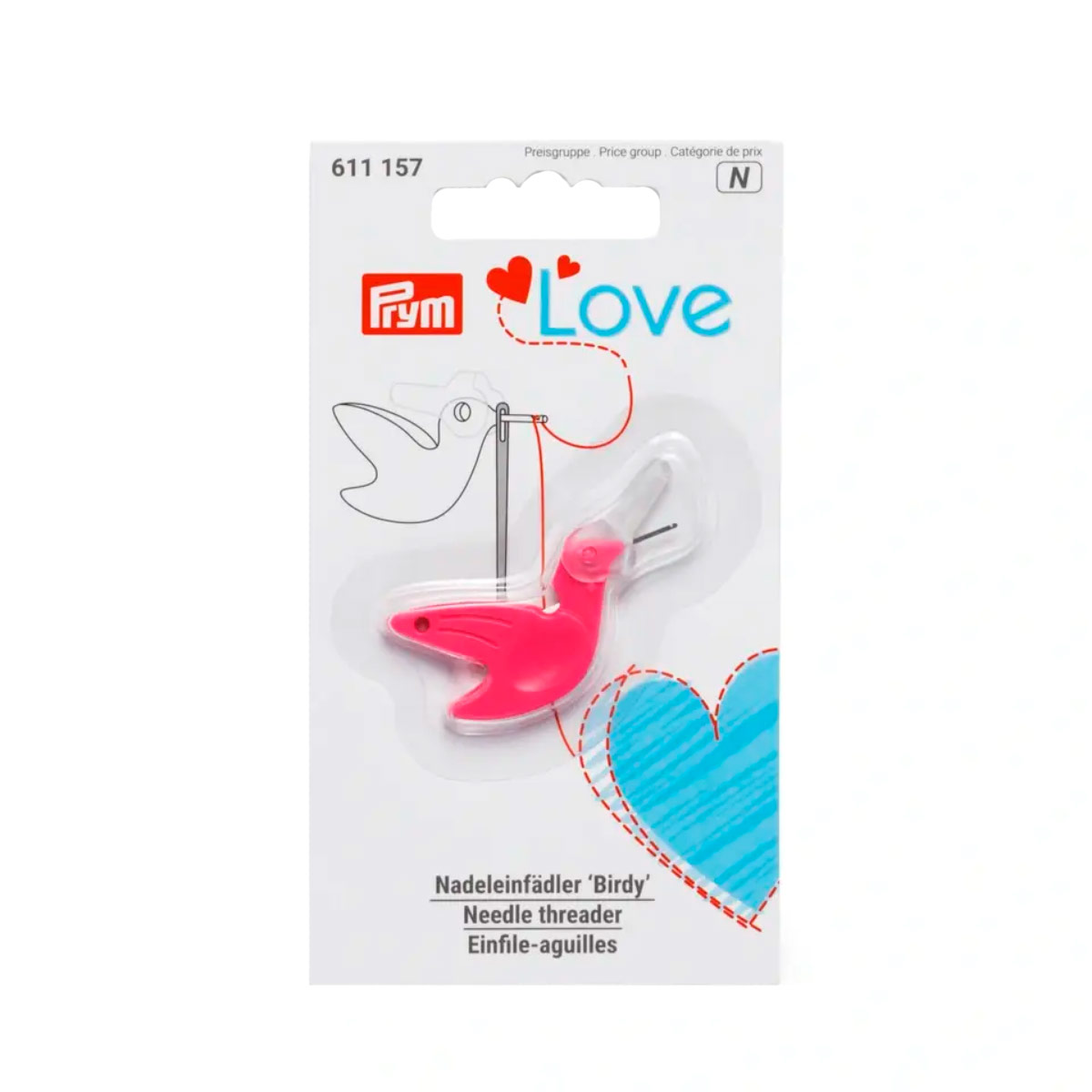 Серия "Prym Love" - Нитевдеватель "Birdy", длина 45мм, пластик/металл, ярко-розовый