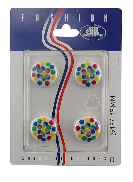Пуговицы, размер 15мм, пластик, разноцветный, 4шт в упаковке