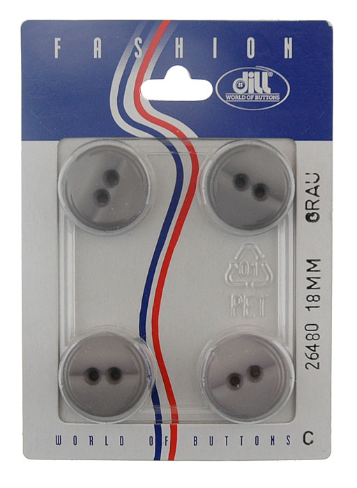 Пуговицы, размер 18мм, пластик, серый, 4шт в упаковке