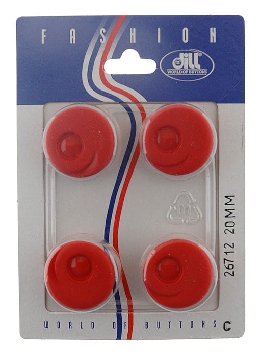 Пуговицы, размер 20мм, пластик, красный, 4шт в упаковке