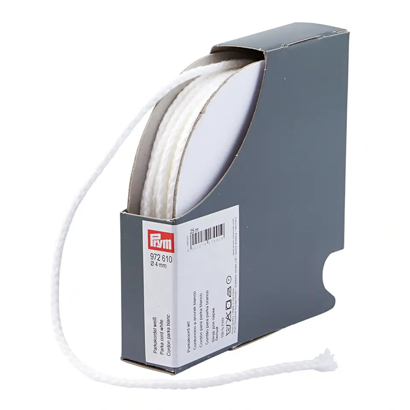 Шнур для парки, диаметр 4мм, 100% полиакрил, белый, Prym, 972610