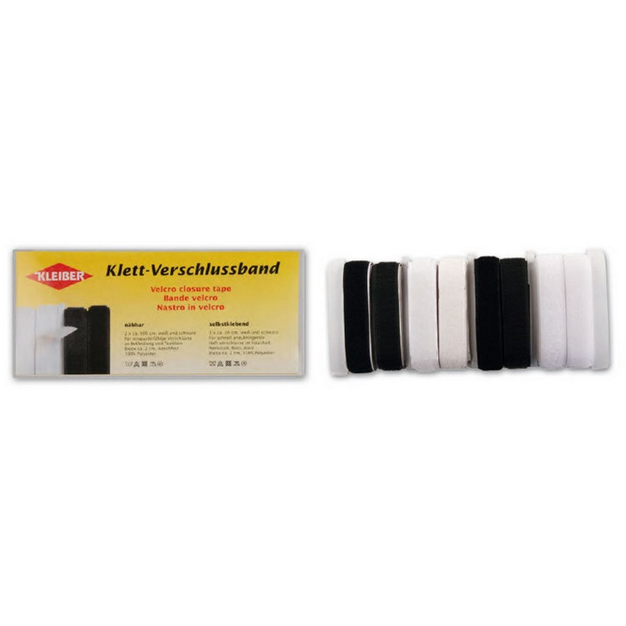 Набор контактной ленты, ширина 2см (для пришивания 2шт по 100см, самоклеющая 2шт по 70см), 100% полиэстер, белый и черный